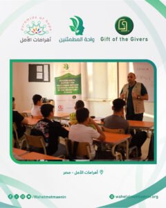 تنفذ هذه الانشطة ضمن برنامج واحة المطمئنين بالشراكة مع مبادرة Pyramids of Hope، وبدعم كريم من مؤسسة Gift of the Givers Palestine